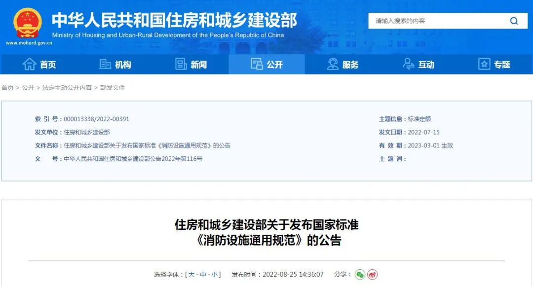 現批準《消防設施通用規范》為國家標準,編號為GB 55036-2023,自2023年3月1日起實施。本規范為強制性工程建設規范,全部條文必須嚴格執行?,F行工程建設標準中有關規定與本規范不一致的,以本規范的規定為準。國家標準《鹵代烷1211滅火系統設計規范》GBJ 110-1987、《鹵代烷1301滅火系統設計規范》GB 50163-1992、《二氧化碳滅火系統設計規范》GB 50193-1993轉為推薦性國家標準,編號分別為:GB/T 50110-1987、GB/T 50163-1992、GB/T 50193-1993。同時廢止下列工程建設標準相關強制性條文: