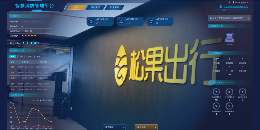 松果出行監管部門可以通過尼特云平臺實時了解各網點消防設備運行情況,及時排查火災隱患,從人工監管轉變為智能監管,大大提高了消防安全監管效率。