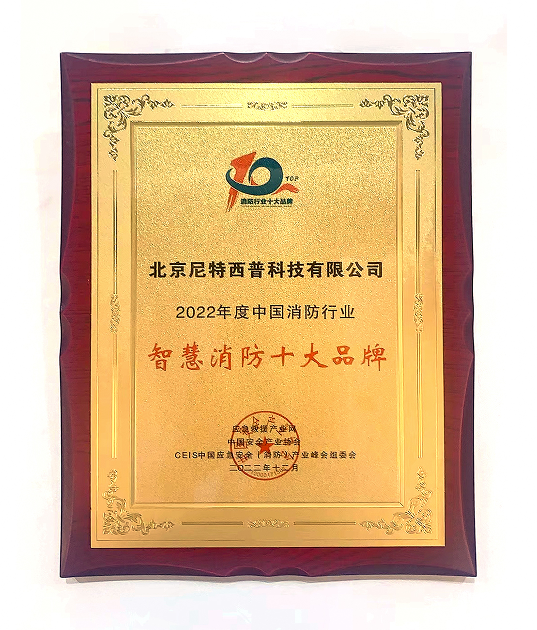 2023年2月28日,由中國安全產業協會消防技術創新專委會、應急救援產業網主辦的“CEIS2022中國應急安全(消防)產業峰會暨消防行業十大品牌頒獎盛典”在蘇州圓滿召開。尼特憑借強大品牌實力與行業影響力榮膺“智慧消防十大品牌”獎項。