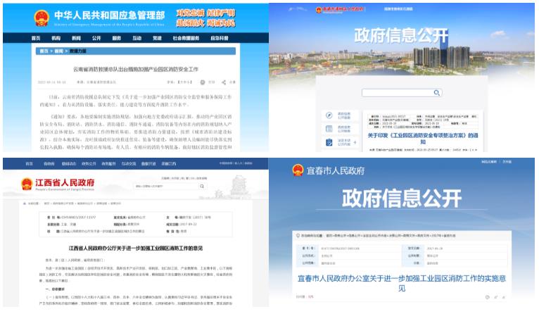 各地區(qū)監(jiān)管部門對工業(yè)園區(qū)消防工作也極為重視,制定了多種相關(guān)政策引導(dǎo)支持工業(yè)園區(qū)消防基礎(chǔ)設(shè)施建設(shè),推動了工業(yè)園消防安全工作的開展。