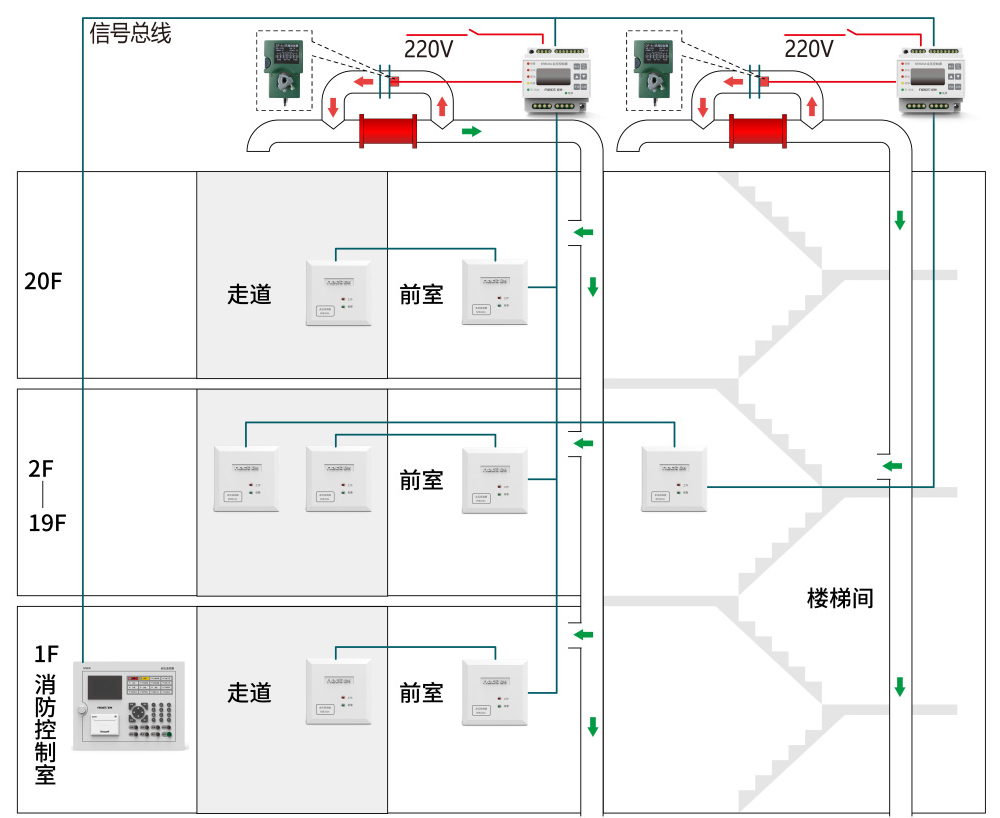 根據(jù)防煙樓梯或前室與消防通道間的實(shí)際情況,尼特免接管型消防應(yīng)急疏散余壓探測(cè)系統(tǒng)方案可以靈活安裝余壓探測(cè)器,在前室已全部安裝探測(cè)器的情況下,樓梯間為上下聯(lián)通的空間時(shí),可以每隔一層安裝一個(gè)探測(cè)器,節(jié)省了余壓探測(cè)器與相關(guān)設(shè)備的采購(gòu)成本,滿足客戶多樣化、個(gè)性化的項(xiàng)目安裝需求。