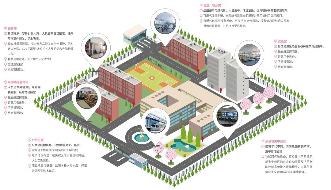 近年來,各地高度重視校園消防安全工作,堅持問題導向,堅持守正創新,聚焦校園消防新問題,進一步營造教書育人的優越環境。作為教育為民的一項重要舉措,尼特校園智慧消防解決方案在各校區的持續落地,為保障師生生命和財產安全,筑起一道道堅固屏障。