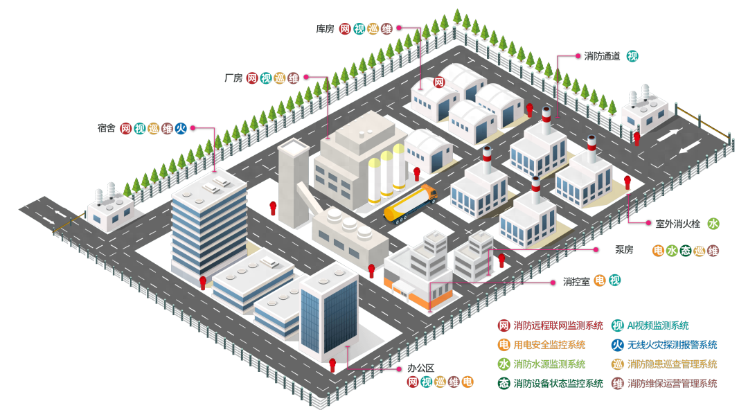 結合4G/5G、NB、LORA等現代通訊信息技術,尼特針對香水河煤礦的實際情況,在原有消防安全管理的基礎上建設各類物聯感知傳感設備,依靠用戶信息傳輸裝置、獨立式感煙探測器、感溫探測器、可燃氣體探測器、消防管網壓力探測器等前端感知設備進行數據采集,通過后端尼特云智慧消防管理平臺統一聯網應用,解決設備孤島問題,切實將安全生產責任落實到人,實現消防安全在線化、可視化智能化的管理,提高香水河煤礦的消防安全管控能力、消防隱患發現以及處置能力、應對火災突發事件的處置效率。