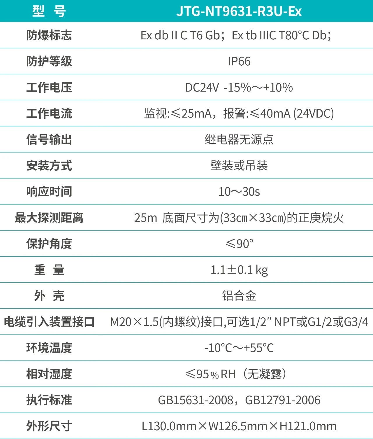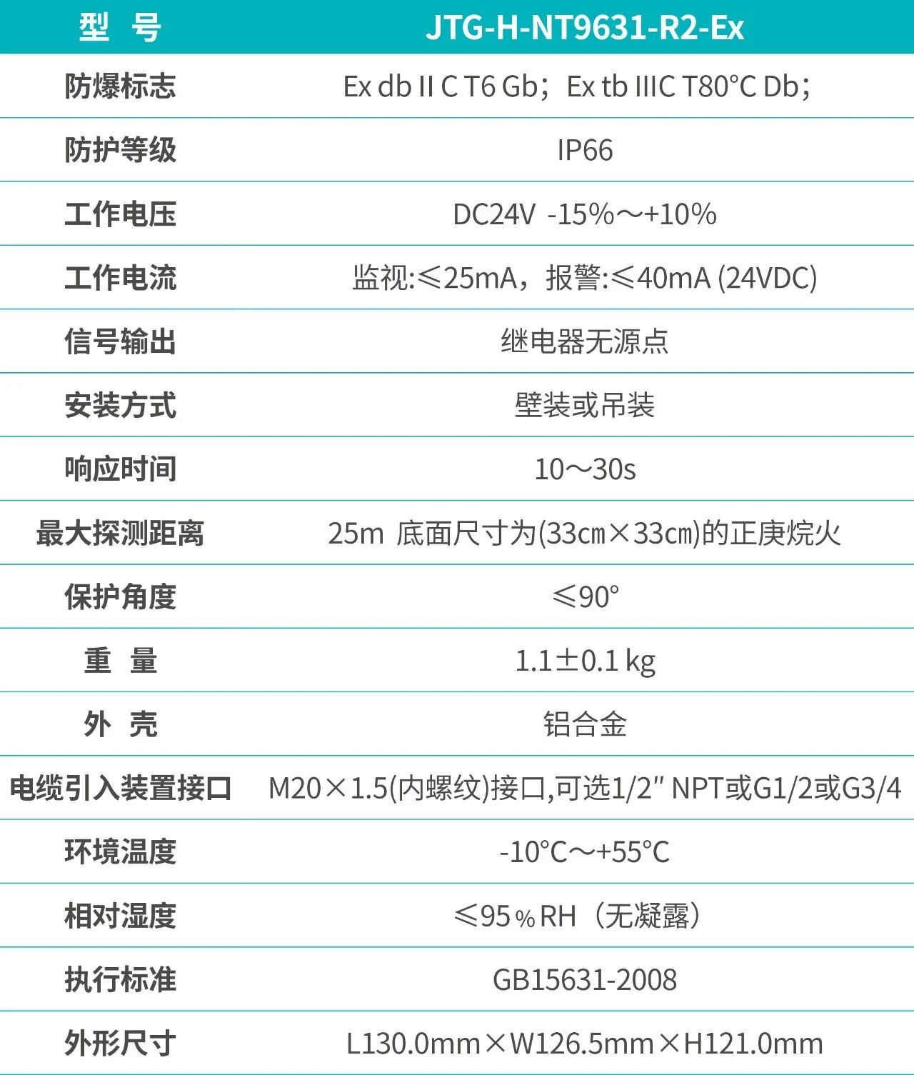 JTG-NT9631-R3U-EX點型紅外火焰探測器