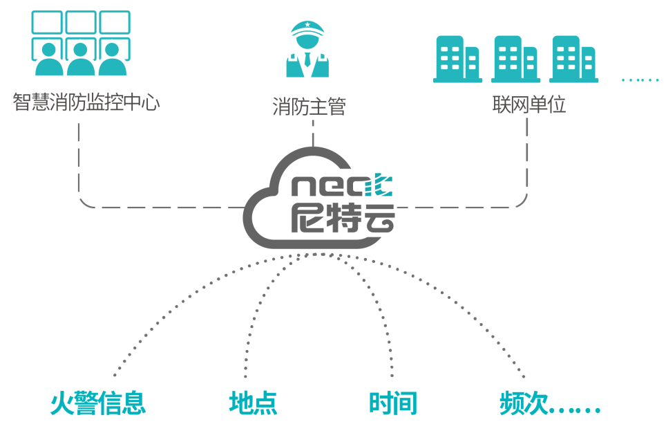 依托自主研發(fā)的尼特云智慧消防管理平臺,尼特智能對相關(guān)的火警信息、地點、時間、頻次等進行多維度呈現(xiàn),便于消防管理人員“一張圖”掌握機構(gòu)火災(zāi)風(fēng)險情況,并通過用戶信息傳輸裝置將原有的火災(zāi)自動報警系統(tǒng)與智慧消防系統(tǒng)進行對接,實現(xiàn)對聯(lián)網(wǎng)單位建筑物消防安全狀況的全方位感知、全過程監(jiān)控。通過將原本各自獨立使用的消防各系統(tǒng)和設(shè)施“物聯(lián)網(wǎng)化”,盡早預(yù)判安全隱患及危險源,極大提高聯(lián)網(wǎng)單位消防安全管理能力。