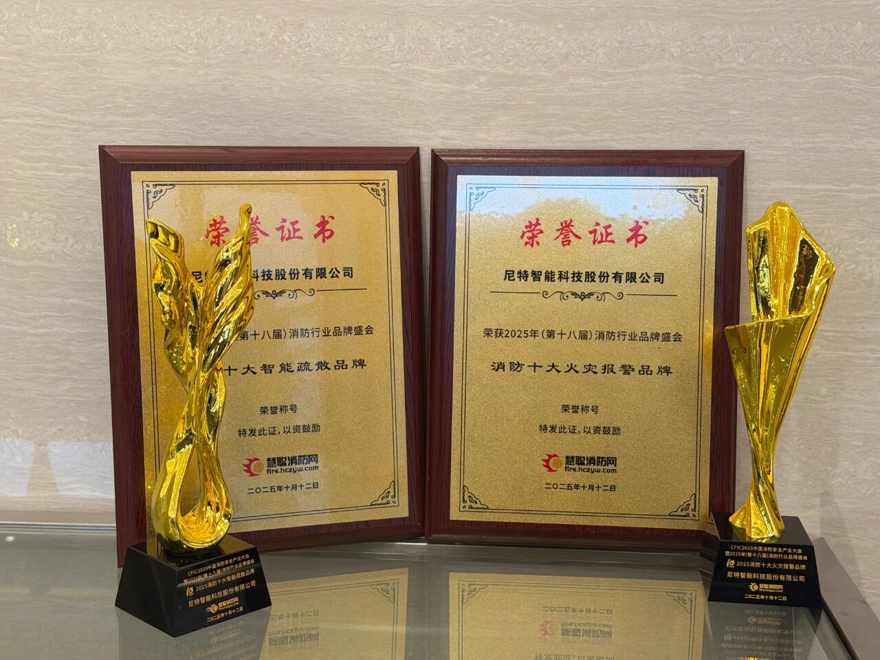 在現場揭曉的2025年度消防行業影響力品牌榜單中,尼特智能科技股份有限公司憑借卓越的產品實力、領先的技術創新和廣泛的市場認可,連續第12年榮膺“消防十大火災報警品牌”“消防十大智能疏散品牌”,再次印證了其在行業中的領軍地位。