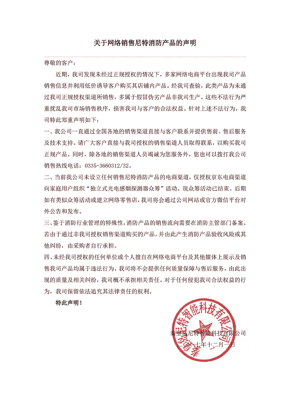 【重要聲明】關(guān)于禁止網(wǎng)絡(luò)銷售尼特消防產(chǎn)品的聲明!