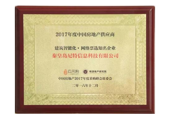 日前,由中國房地產行業采購招投標權威平臺明源云采購,攜手全經聯、明源地產研究院舉辦的中國房地產行業優秀供應商評選揭曉。尼特從國內外眾多企業中脫穎而出,榮獲2017年度中國房地產供應商“建筑智能化知名企業”稱號,并收獲了眾多開發商和專家組的一致好評。