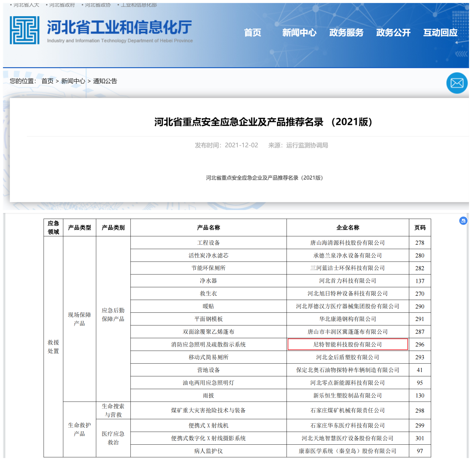 為深入貫徹習(xí)近平總書記關(guān)于優(yōu)化關(guān)鍵物資生產(chǎn)能力布局的重要指示,加快健全統(tǒng)一的戰(zhàn)略和應(yīng)急物資儲(chǔ)備體系,河北省應(yīng)急產(chǎn)業(yè)聯(lián)盟、河北省電子信息技術(shù)研究院圍繞監(jiān)測預(yù)警、預(yù)防防護(hù)、救援處置和應(yīng)急服務(wù)四大領(lǐng)域,遴選了具有代表性的重點(diǎn)企業(yè),發(fā)布了《河北省重點(diǎn)安全應(yīng)急企業(yè)及產(chǎn)品推薦名錄(2021版)》,尼特消防成功入選救援處置類重點(diǎn)企業(yè),消防應(yīng)急照明及疏散指示系統(tǒng)作為救援處置類推薦產(chǎn)品登記在冊。